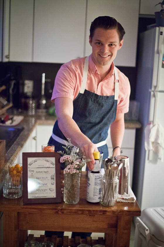 Dan’s drinks were spot on. The Southside Royale served in a coupe felt like a celebratory way to kick off the evening. The Nagami Swizzle was such a gorgeous looking drink with layers of color and the pop of kumquat on the top. But the White Negroni was definitely a (surprise) favorite of the night. If you’re not familiar with Suze, it’s a French, bitter apertif that’s a little bit sweet and herbal. Dan hand cut all the ice used for serving and shaking.