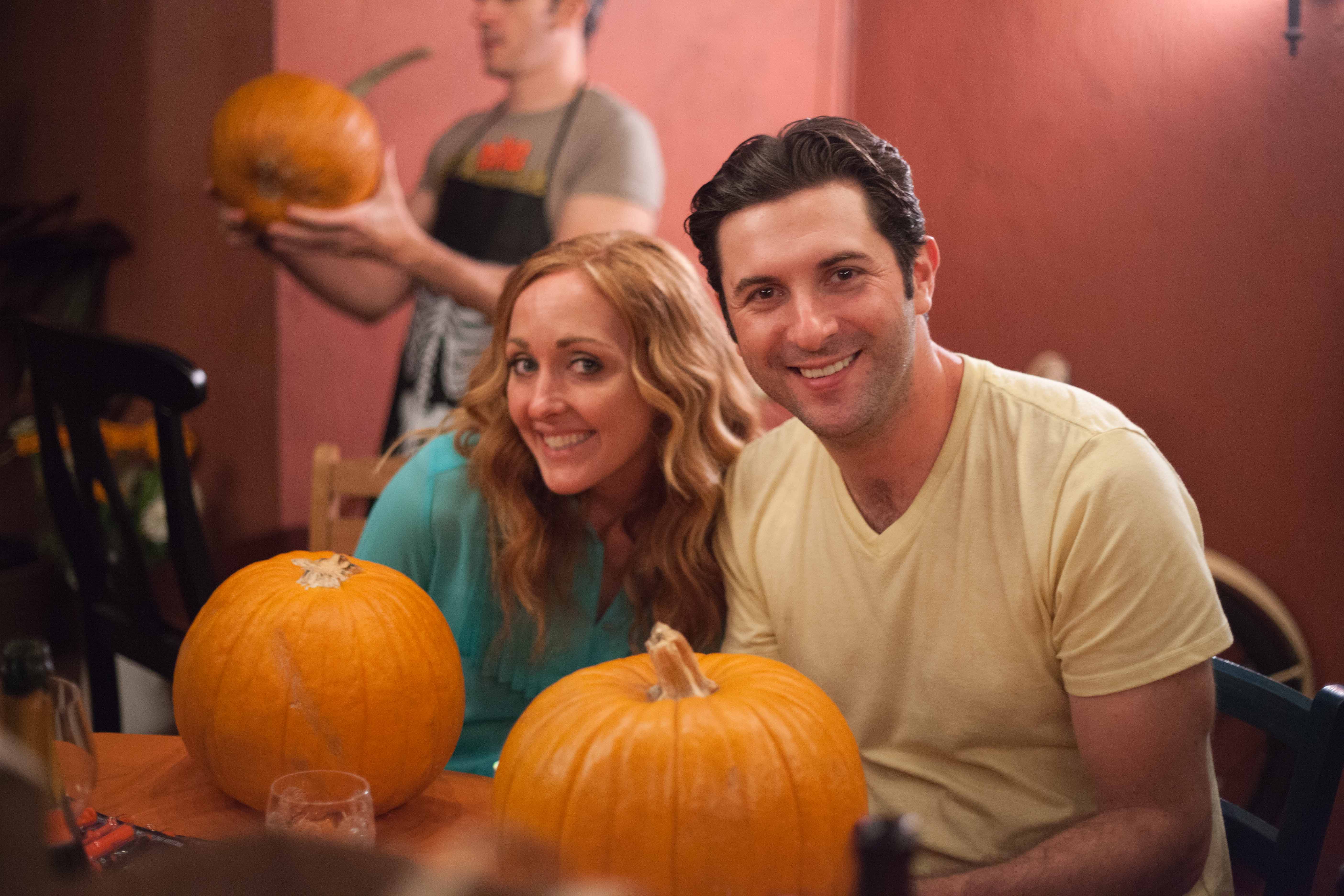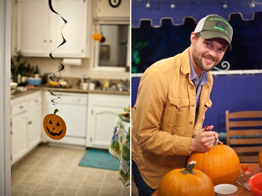 Our friends hosted the most adorable pumpkin carving party last week on their awesome patio. They made delicious turkey burgers and mulled wine, and everyone brought snacks, pumpkins, and carving tools–it was so fun and festive! And you guys, my fiance is a master pumpkin carver. Yes, he follows a pattern we purchased at Target, but he perfectly executes the five pumpkin level pattern because he’s soooo patient! That Scott family of his taught him well. My ghost pattern was a two pumpkin level in difficulty, and I almost gave up half way through scooping out the goop, but once that part was over I was on my way. We preserved them in our fridge to simulate east coast weather so they would last until the weekend for The Whaling Club. Smart, right? Thanks, Google.